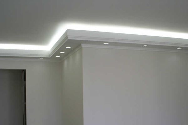 Instalação de spots, pendentes e luminárias embutidas em sancas e forros de gesso.