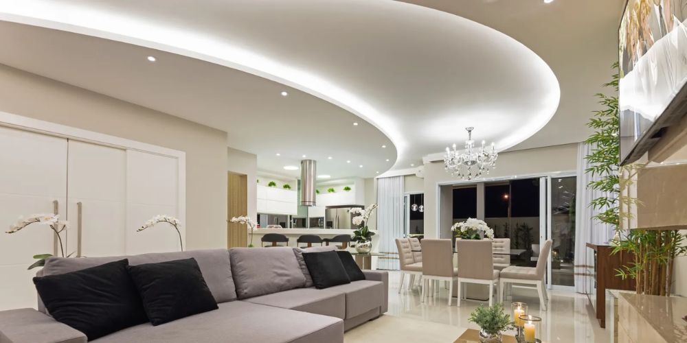 A instalação do gesso sempre vem acompanhada de um bom sistema de iluminação. Lustres, pendentes, fitas de led, lampadas, etc. Essa instalação compreende o passamento dos fios e até o direcionamento correto dos interruptores.